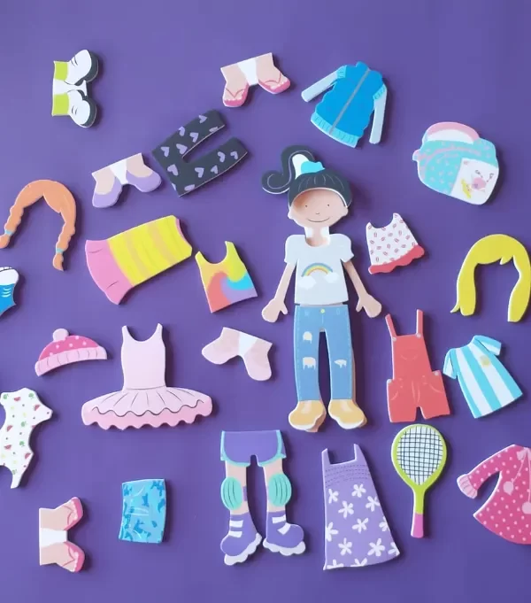 Divertite vistiendo a la muñeca como más te guste. La podés cambiar todas las veces que quieras (o hasta que se te arrugen muuucho los dedos)