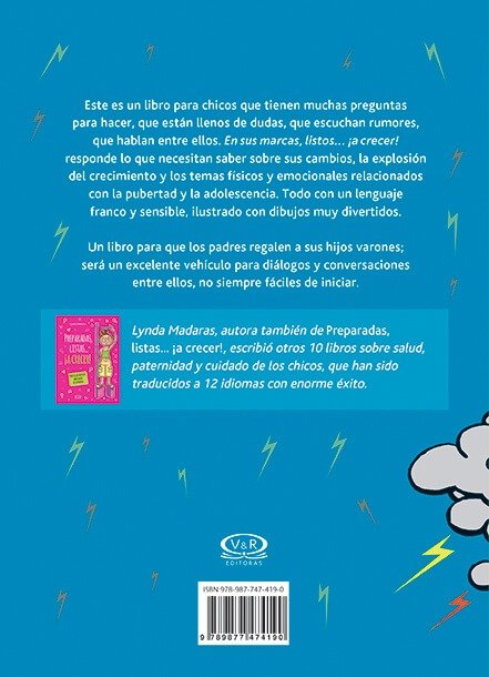 Un libro para chicos que tienen muchas preguntas para hacer, que están llenos de dudas, que escuchan rumores, que hablan entre ellos. En sus marcas, listos ¡a crecer! responde lo que necesitan saber sobre sus cambios, la explosión del crecimiento y los temas físicos y emocionales relacionados con la pubertad y la adolescencia.