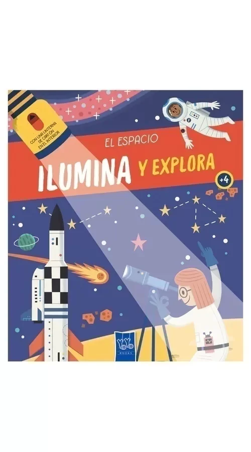 e ilumina detrás de cada imagen para descubrir cosas asombrosas. Descubre planetas, estrellas y otros objetos cósmicos en cada una de las imágenes multicolores.