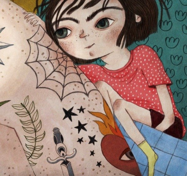 El papá de Celia tiene muchos tatuajes.