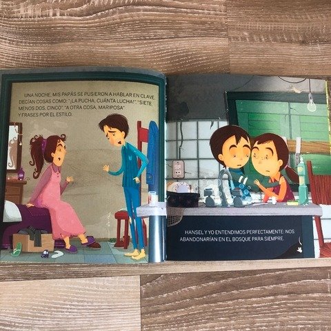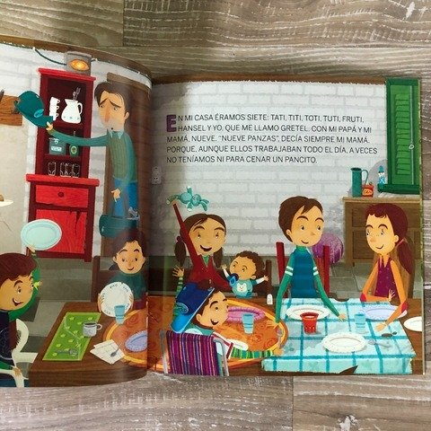 En casa éramos siete hermanos: Tati, Titi, Toti, Tuti, Fruti, Hansel y yo, que me llamo Gretel. Con mi papá y mi mamá, nueve. “Nueve panzas”, decía siempre mi mamá. Porque, aunque ellos trabajaban todo el día, muchas veces no teníamos ni para cenar un pancito. ¡Pero no se preocupen! Hansel y yo nos internamos en lo más oscuro del bosque… Y encontramos una casita de chocolate… Y a una malvada bruja carnívora… Y entonces… ¡Ay! ¿Les dije que no tenían que preocuparse?