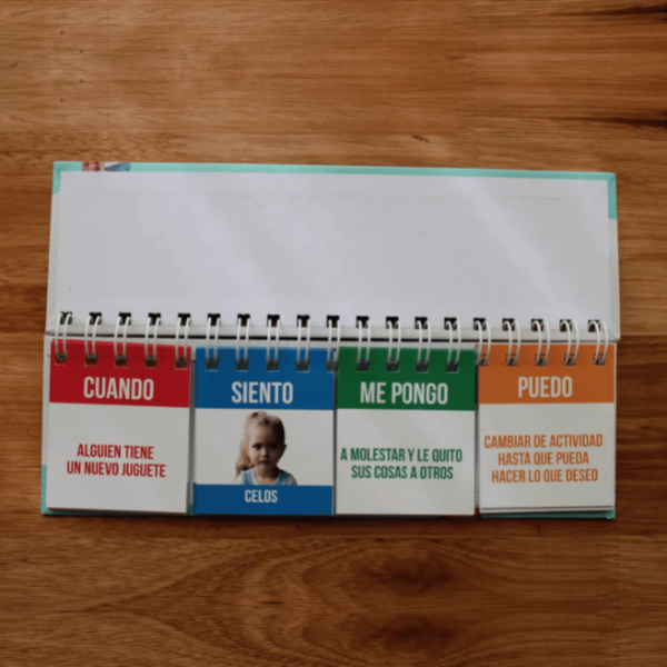 Es una excelente herramienta para ayudar a lxs niñxs a reconocer cada emoción que lxs atraviesa. También les enseña a regular las emociones y expresarlas de forma positiva. Contiene distintas situaciones con todas las emociones para asociar a esa situación y distintas maneras de abordar lo que nos pasa cuando sentimos las distintas emociones. Hoja en blanco al final para poder completar con experiencias personales.